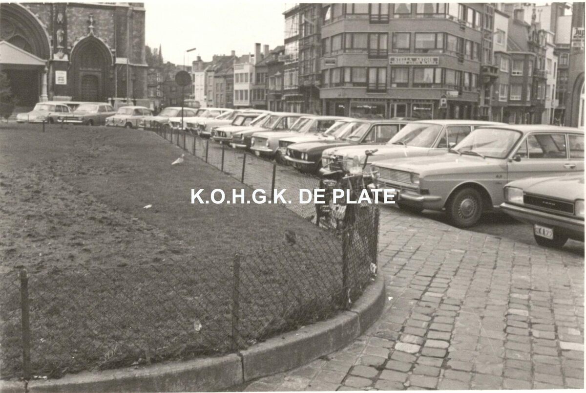 Formaat : 8 x 12 cm. - Links een gedeelte van de Sint Petrus en Pauluskerk, rechtdoor de Prins Boudewijnstraat, helemaal rechts het begin van de Kaaistraat.