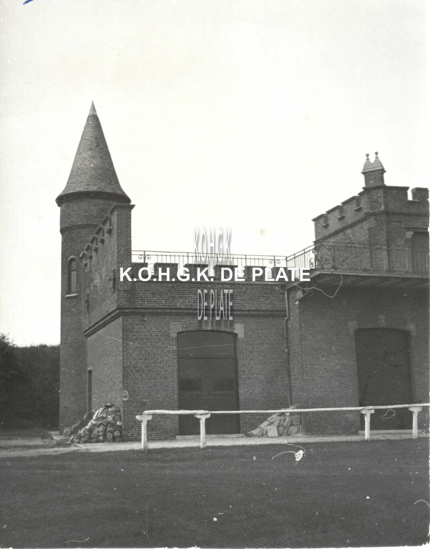 Formaat : 13,5 x 10 cm. - Het gebouw van de duivenschieting en de paardenstallen ligt in het midden van het terrein.