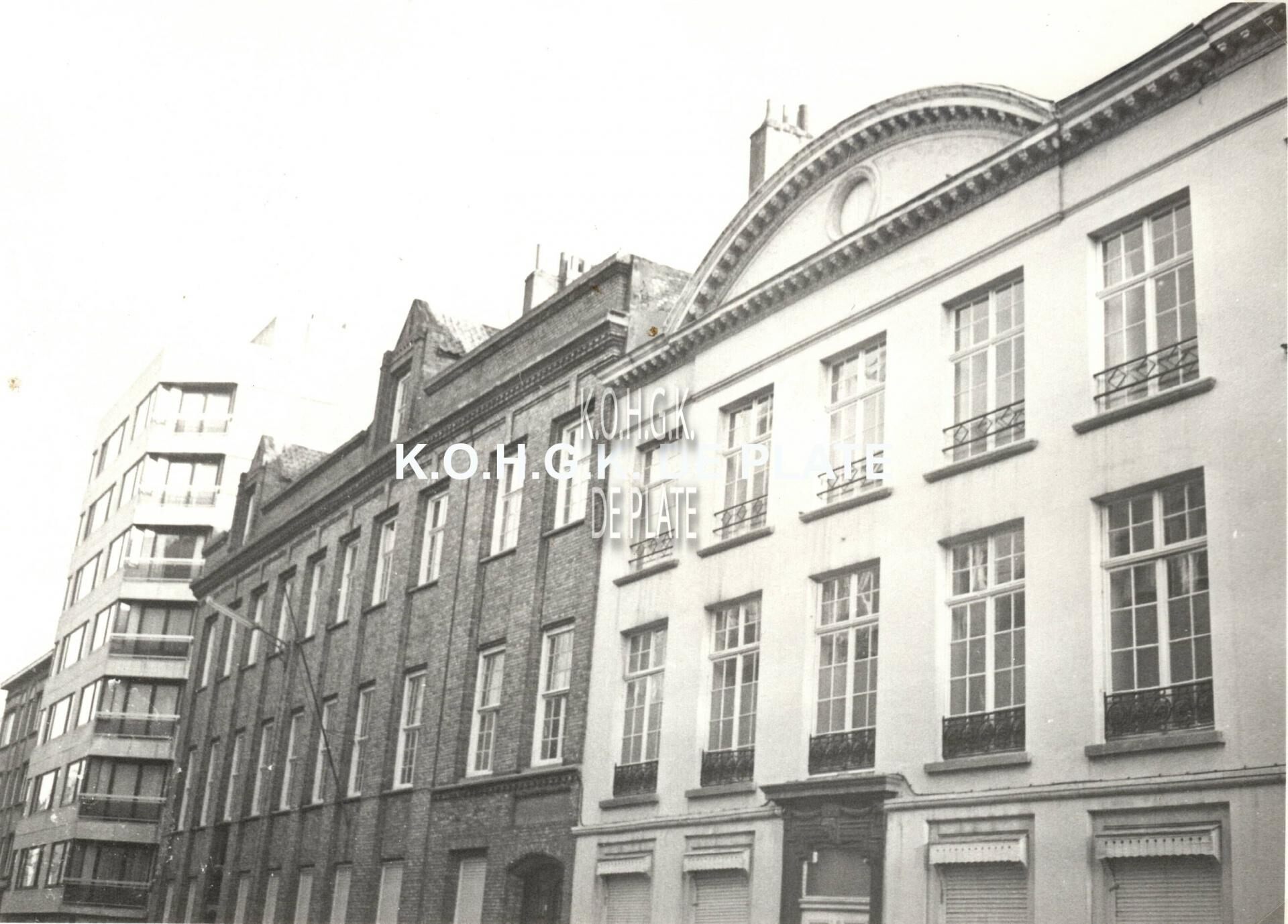 Formaat : 8 x 12,5 cm. Schoolgebouw Kaaistraat 16-20. Voorheen op nr. 16 het Sint Jozefslyceum. Het witte gebouw met de boog is het ouderlijke huis van Jan Piers