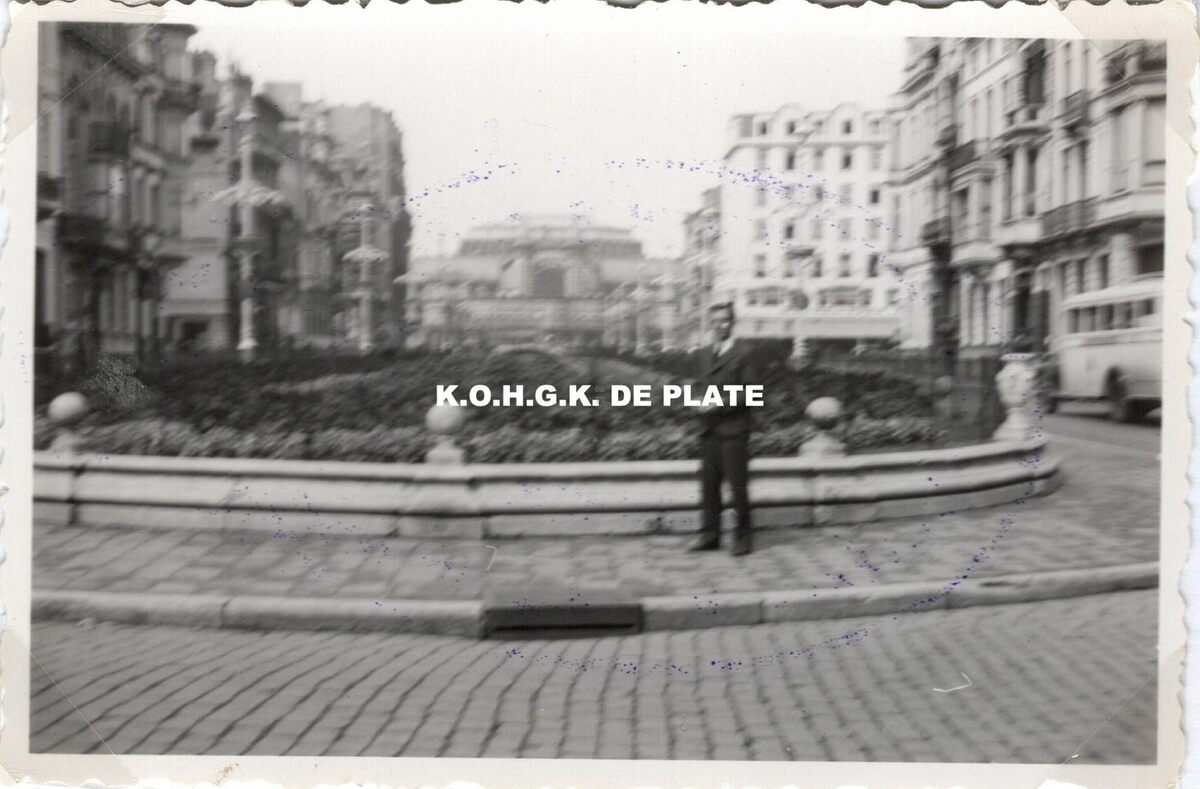 Formaat : 5,5 x 8,5 cm. De Leopoldlaan richting kursaal met mooi aangelegde bloemenperken in het midden. Het witte gebouw rechts is "Hotel du Parc"