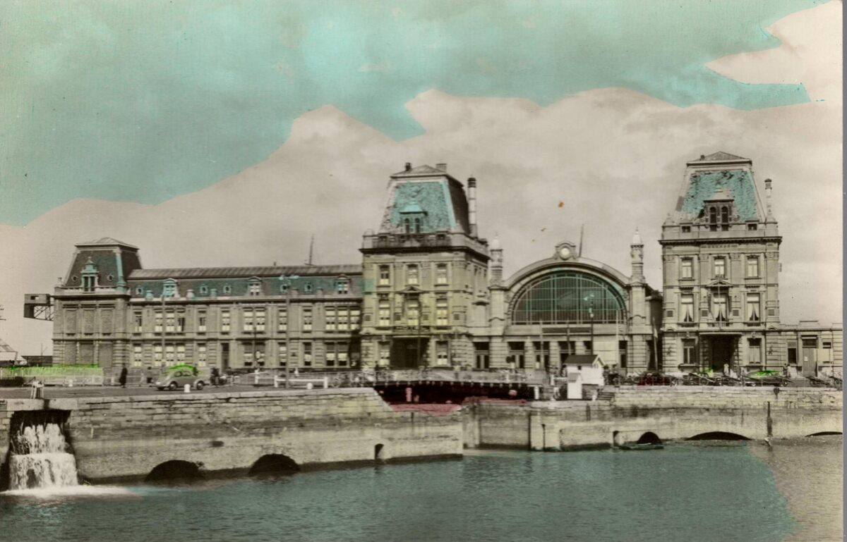 Zaeyen en Smit. - Ostende, Gare Ostende Kaai. - Bijgekleurde kaart. - Het Zeestation en op de voorgrond, detail van het eerste handelsdok. Links, de zeesluis die toegang gaf tot de havengeul