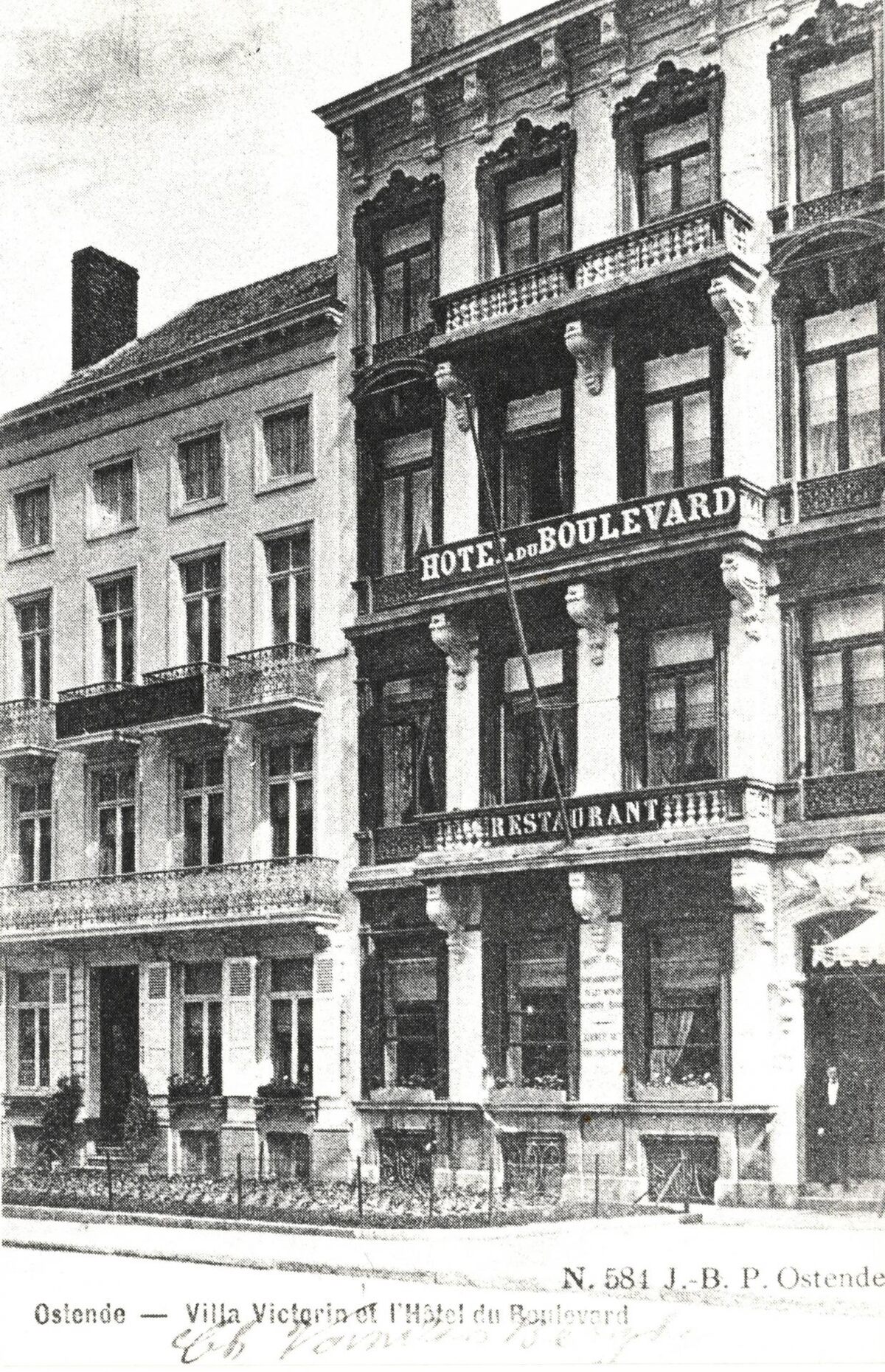 Afdruk van postkaart J.-B.P., Formaat : 14 x 9 cm. - Ostende - Villa Victoria et l'Hôtel du Boulevard