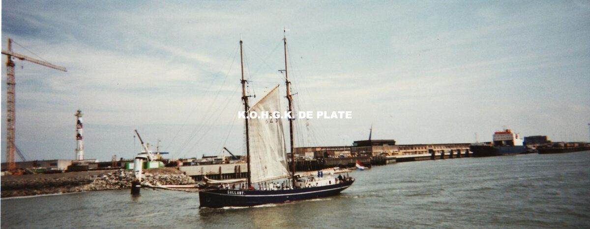 Formaat : 10 x 23 c m. Zeillogger "Gallant" uit Amsterdam in de havengeul