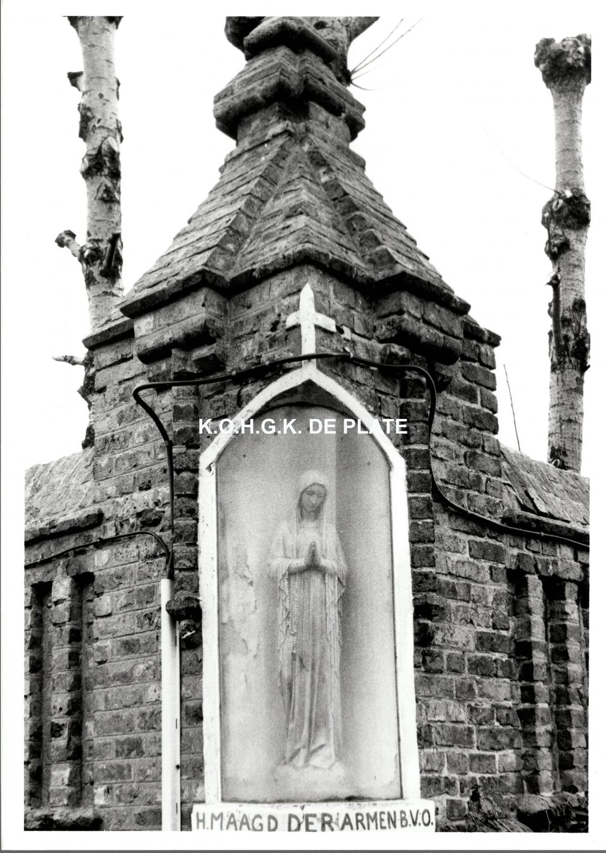Formaat : 17 x 11,5 cm. - Klooster en bejaardentehuis van de Zusterkens der Armen in de Pontonstraat. Het Mariabeeld stond op hoek van de Pontonstraat en de Nachtegalenlaan en werd in 1950 met een ingetogen plechtigheid ingehuldigd.