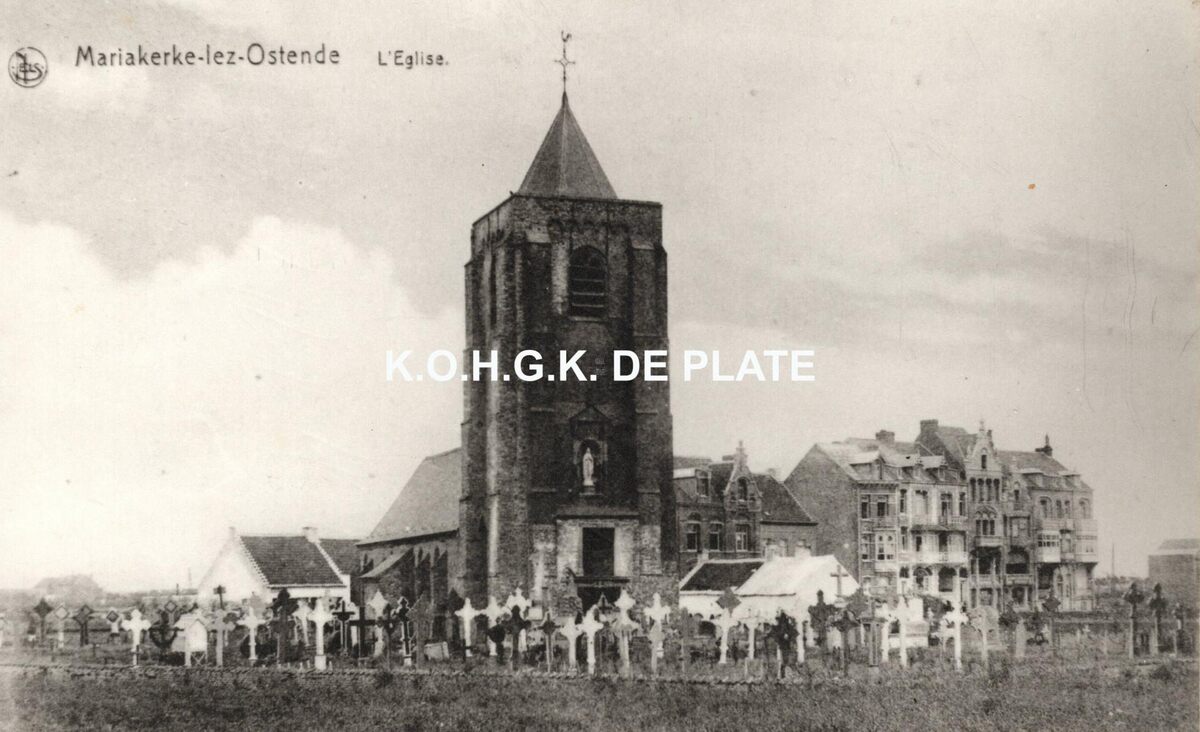 Formaat : 7,5 12,5 cm. - De kerk met rondom de begraafplaats en zicht op de dorpsstraat
