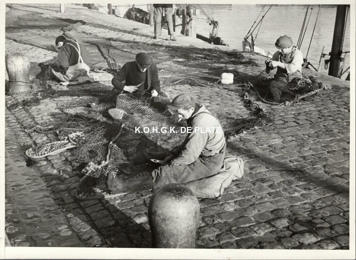 Formaat : 12 x 17,5 cm. - Vissers herstellen hun netten op de Visserskaai