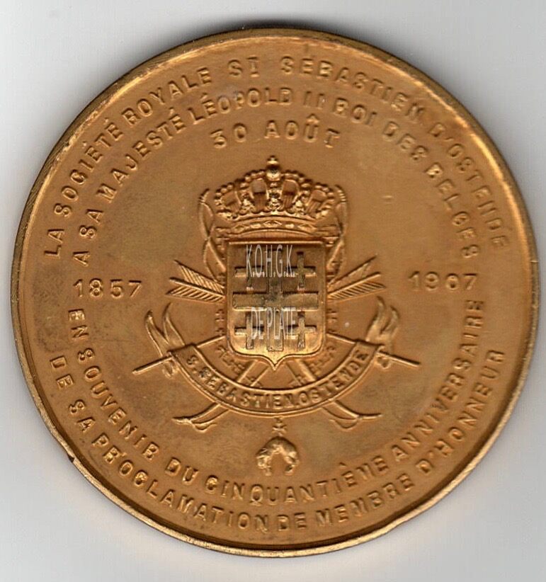 Source URL: https://www.deplate.be/penning-leopold-ii-erelid-sint-sebastiaansgilde-1907