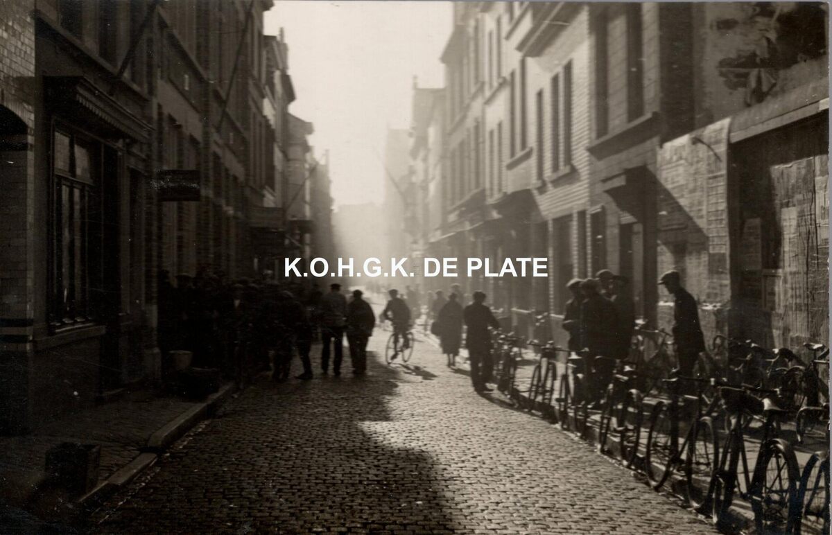 Formaat : 9 x 14 cm. - De Sint-Franciscusstraat richting Mijnplein, met links de werkbeurs.