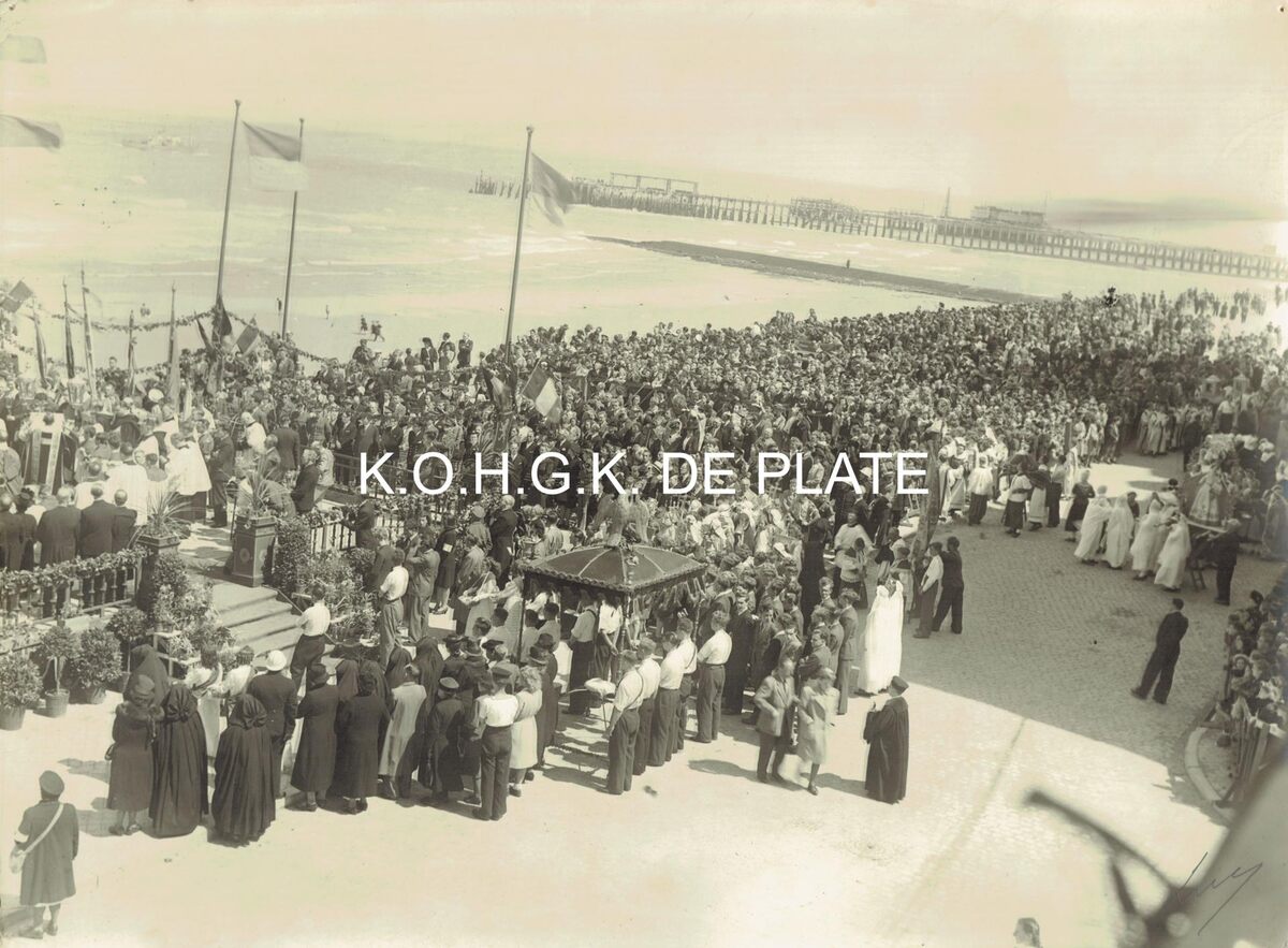 Formaat : 30 x 40 cm. - Een massa volk op de Albert I-Promenade om het zegenen van de schepen mee te maken.