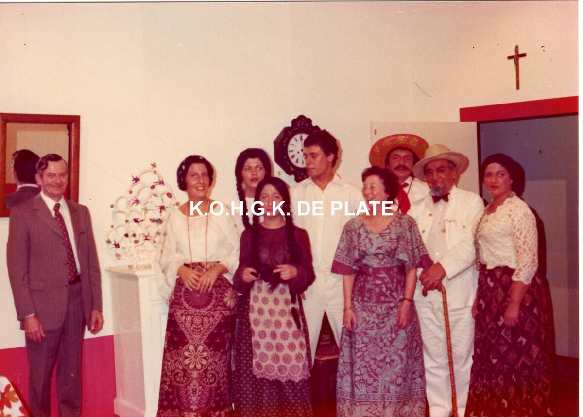 Formaat : 9 x 12 cm. - De toneelspelers van het Conservatoriumtoneel in het toneelstuk "Fiësta" van Marc Fontenel en Oscar Ferket