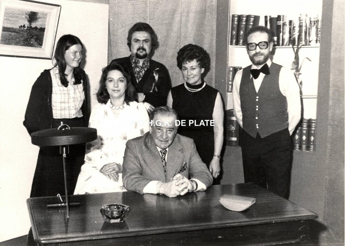Formaat : 12,5 x 17,5 cm. - De toneelspelers van het Conservatoriumtoneel in het toneelstuk "De Dolle Hond"