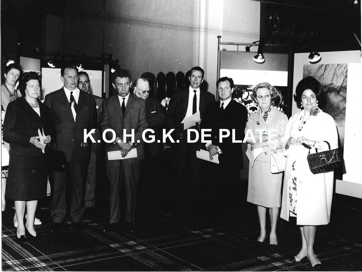 Formaat : 18 x 24 cm. - De vernissage. Rechts, naast de twee dames, Willy Bosschem en naast hem Alfons Laridon (?)