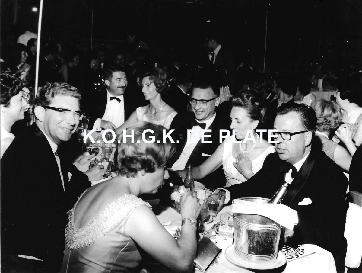Formaat : 18 x 24 cm. - Persgala onder de patronage van de beroepsunie van de Belgische Pers. De liberale familie was talrijk aanwezig. Vooraan rechts, Frans Grootjans, Herman Vanderpoorten, minister van Binnenlandse Zaken, mevrouw Jan Piers en Roger De Kinder. Links, Willy Declercq, vice-premier