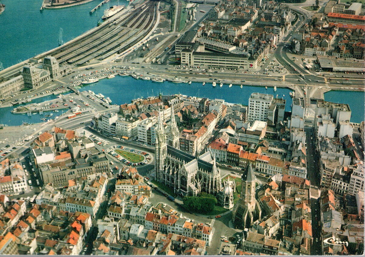 Van Mieghem/AVM. - OOSTENDE - St. Petrus en Pauluskerk en het Station - OSTENDE - Eglise Saint Pierre et Paul et la gare - OSTEND - St. Peter and Paul's Church and the station - OSTENDE - St. Petrus und Paulus-Kirche und der Bahnhof