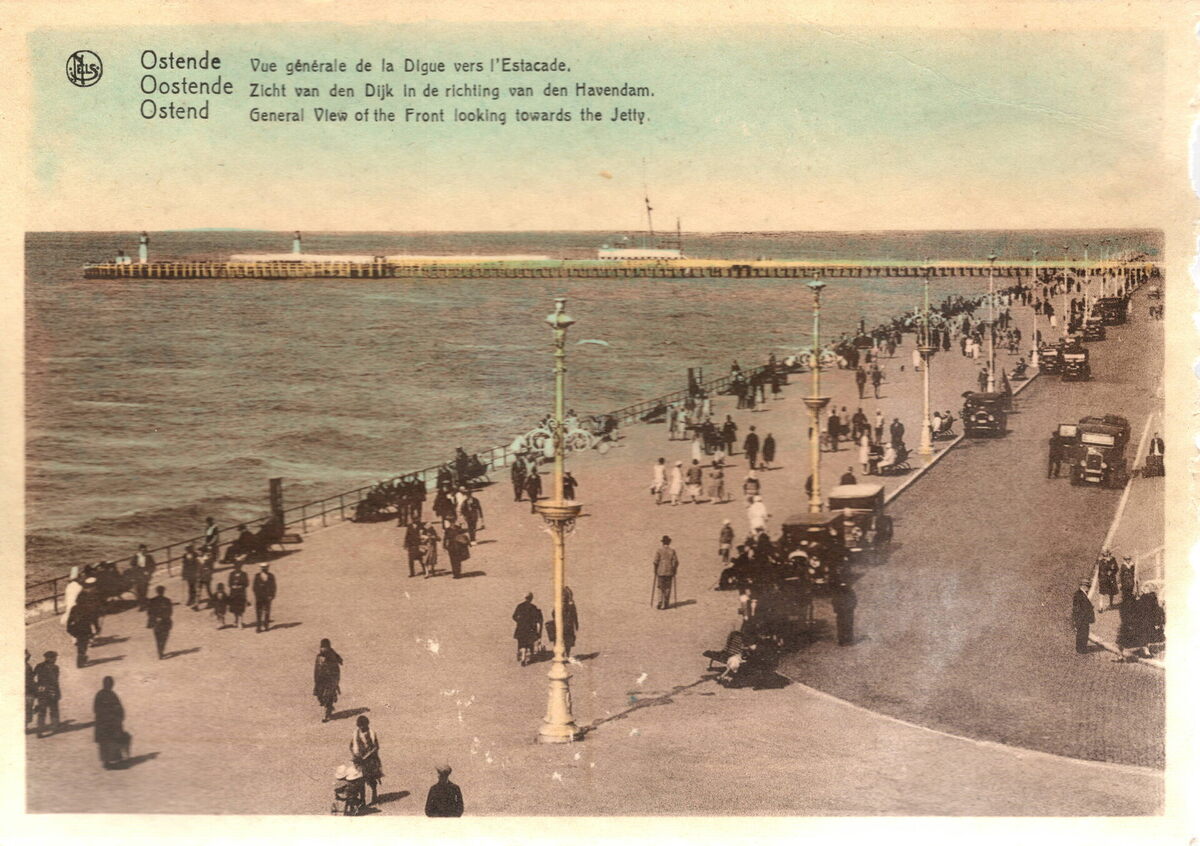 Nels. - OSTENDE Vue générale de la Digue vers l'Estacade - Oostende Zicht van den Dijk in de richting van den Havendam - OSTEND General View of the Front looking towards the Jetty. - Bijgekleurde kaart