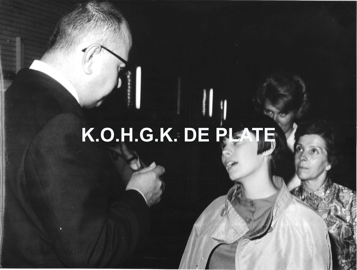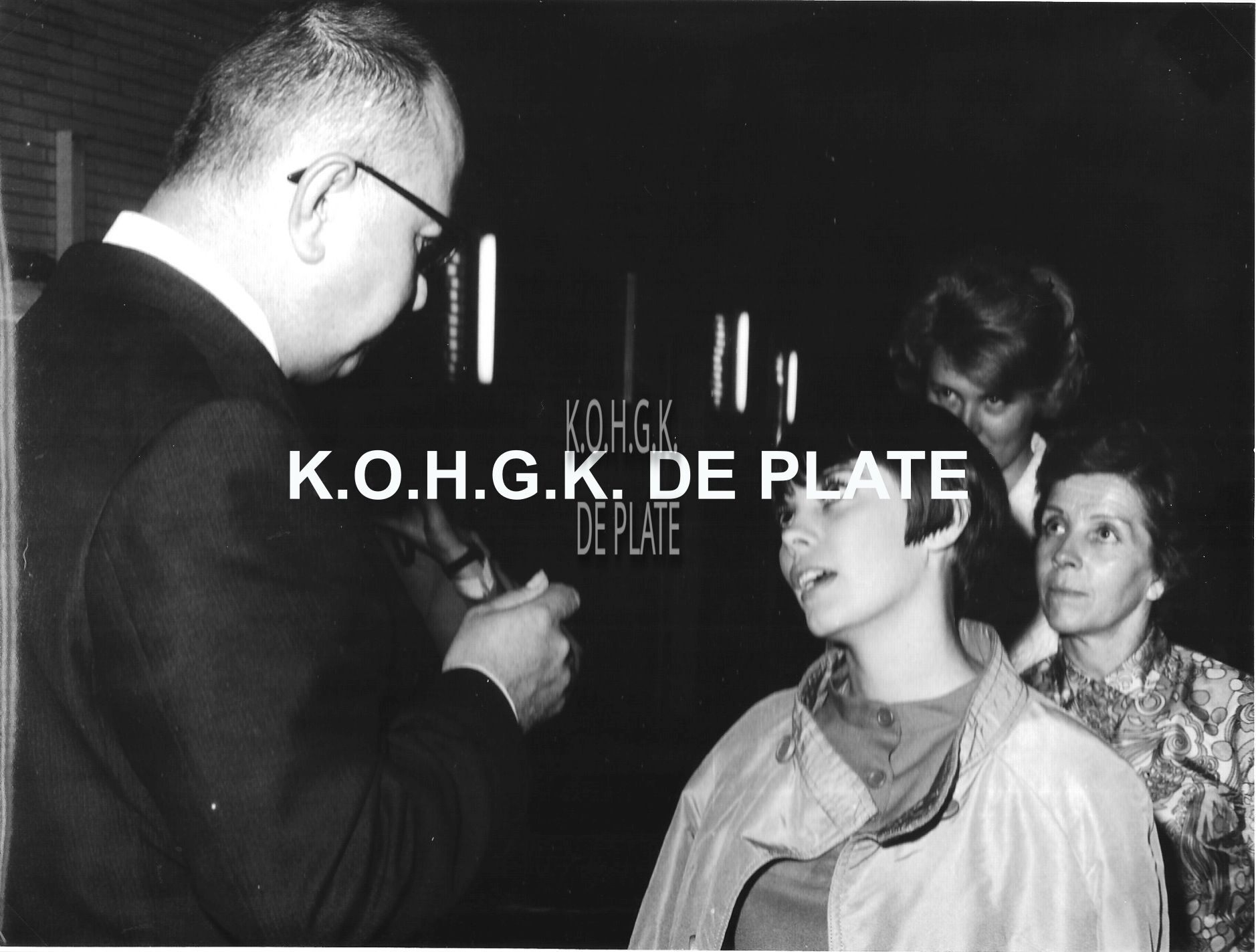 Formaat : 18 x 24 cm. - Mireille Mathieu in gesprek met Roger De Ramée, directeur van de kursaal