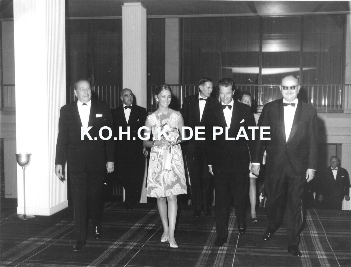 Formaat : 18 x 24 cm. - Centraal tussen het prinsenpaar, Jan Piers, minister-staatssecretaris Openbaar Ambt en Toerisme en rechts, Roger De Ramée, directeur van de kursaal