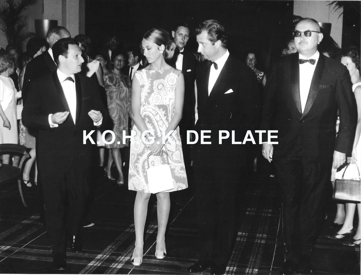 Formaat : 18 x 24 cm. - Het prinsenpaar krijgt uitleg van Willy Bosschem, persverantwoordelijke van de kursaal. Rechts, Roger De Ramée, directeur van de krusaal