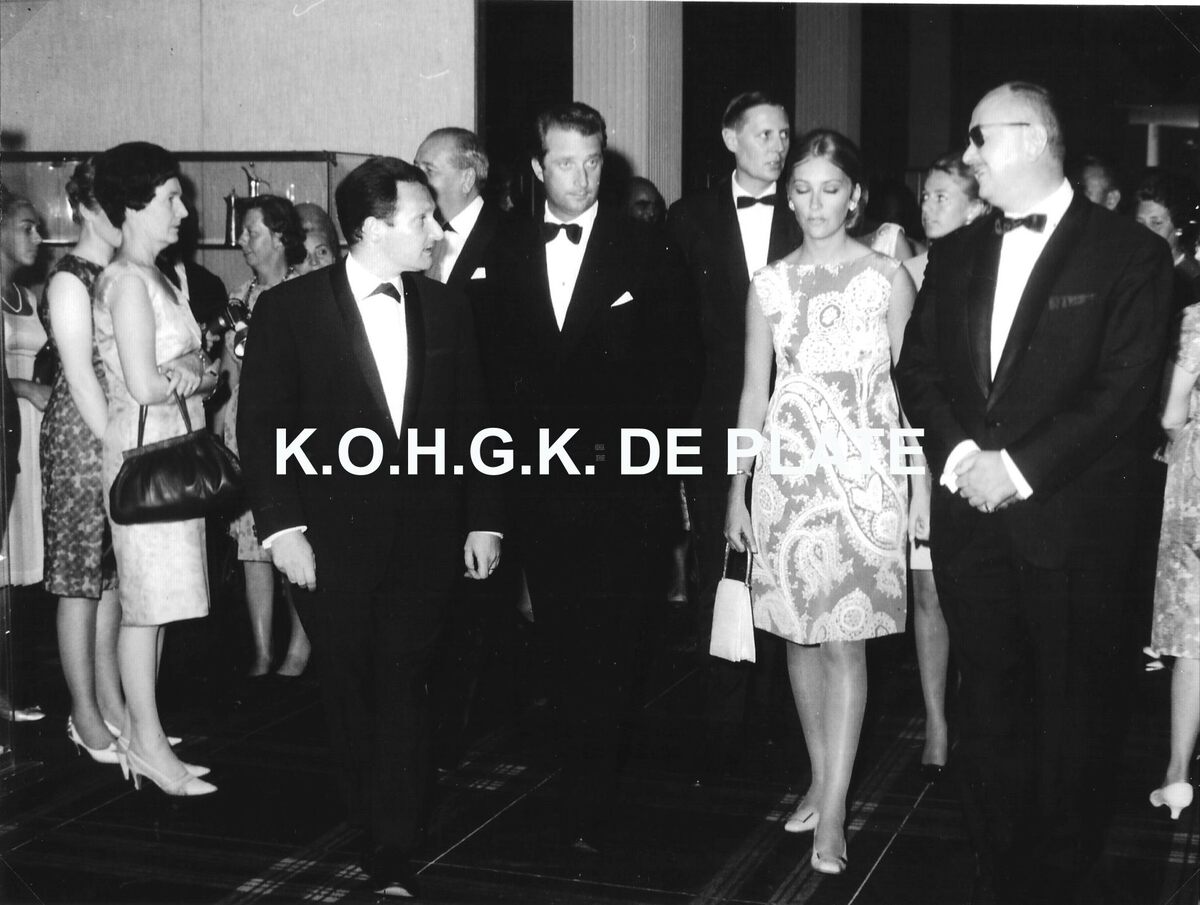 Formaat : 18 x 24 cm. - Het prinsenpaar krijgt uitleg van Willy Bosschem, persverantwoordelijke van de kursaal. Centraal tussen hen, Jan Piers, minister-staatssecretaris Openbaar Ambt en Toerisme. Rechts, Roger De Ramée, directeur van de kursaal
