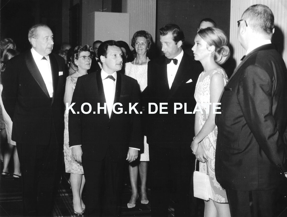 Formaat : 18 x 24 cm. - Het prinsenpaar krijgt uitleg van Willy Bosschem, persverantwoordelijke van de kursaal. Rechts, Roger De Ramée, directeur van de kursaal.