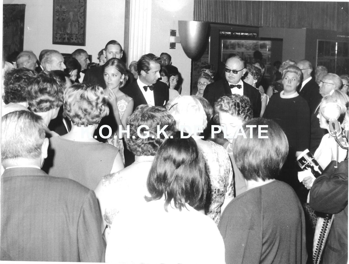 Formaat : 18 x 24 cm. - Veel volk rond het prinsenpaar. Met donkere bril, Roger De Ramée, directeur van de kursaal