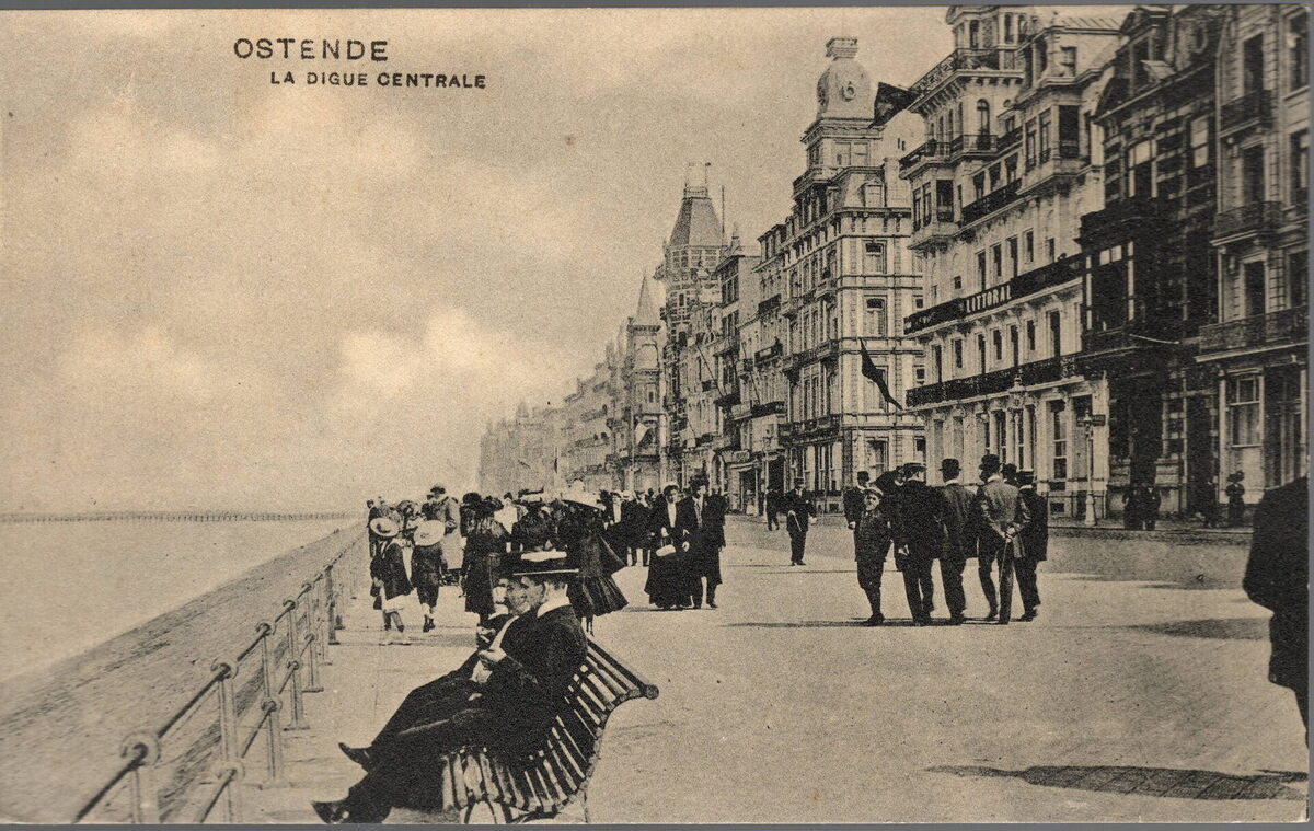 De Zeedijk richting havengeul. Rechts Hôtel du Littoral op de hoek met de Hertstraat