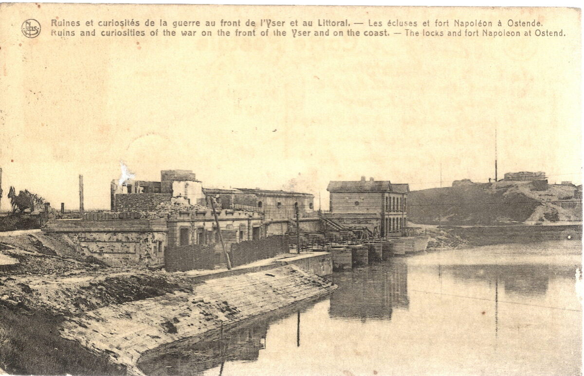 Nels. - Ruines et curiosités de la guerre au front de l'Yser et au Littoral. - Les écluses et fort Napoleon à Ostende. - Ruins and curiosities of the war on the front of the Yser and on the coast. - The locks and fort Napoleon at Ostend.