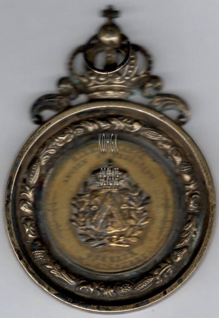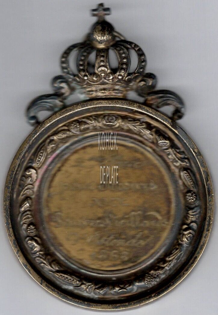De gedenkpenning is rond met geprofileerde rand, erboven een kroon met kruis op bol gesteund door voluten, en is als volgt ingegraveerd :