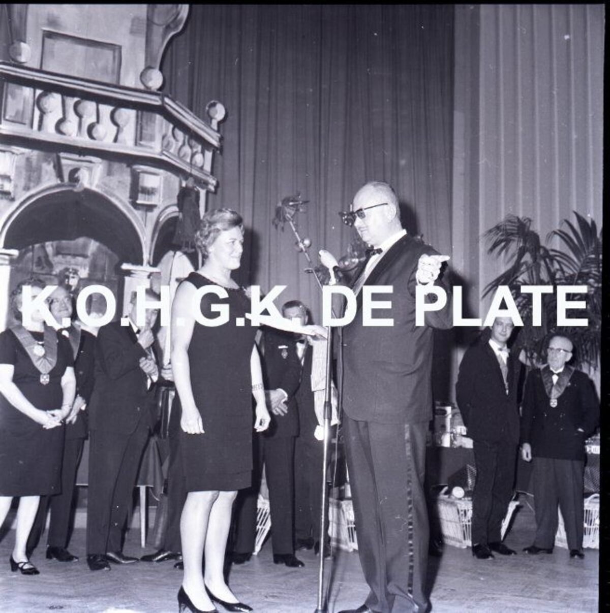 Negatief : 6 x 6 cm. - Banket met 800 aanwezigen onder het teken van de "Perron de Liège". Een huzarenstukje door de brigade van de Casino-Kursaal. Uitreiking van de prijzen aan de laureaten van de kookwedstrijd Prosper Montagné 1969. Meesterkok van België 1969 werd Roland De Reu uit Erps-Kwerps. Tweede, José Lambrechts uit Oostende. Intronisatie van ridder en officier in "l'Ordre gastronomique de Saint Fortunat" door Roger De Ramée, voorzitter van de "Club Prosper Montagné"