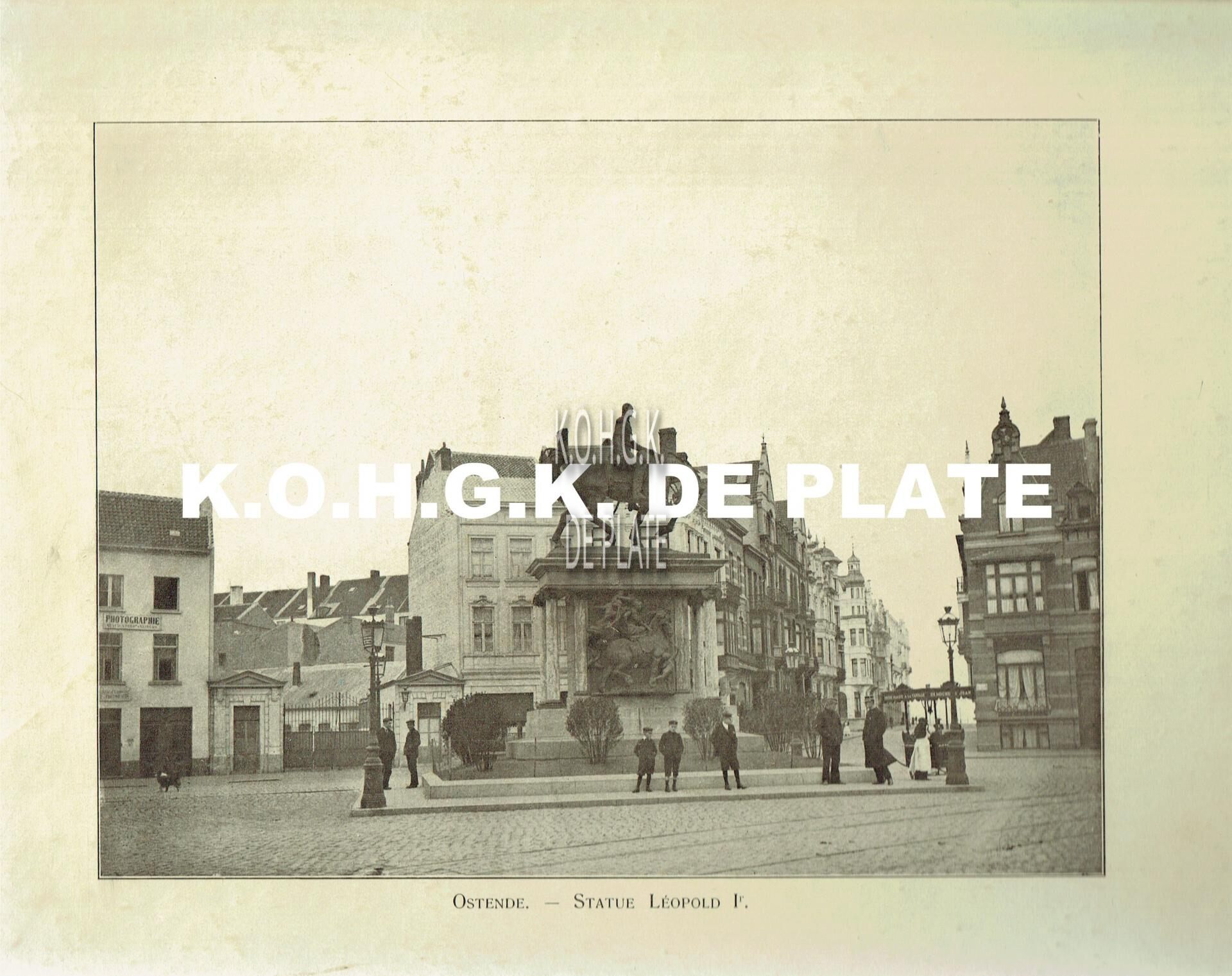 Formaat : 17 x 22,5 cm. - Het Leopold I-monument op het Leopold I-plein, met rechtdoor de Kemmelbergstraat. In de voorgrond tramsporen.