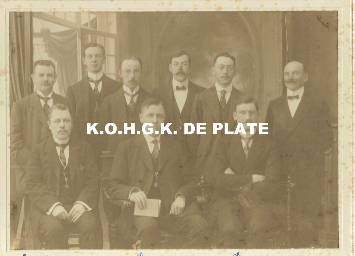 Formaat : 13 x 17,5 cm. - Zittend v.l.n.r. : Albert Bens, Guillaume Soenen en Michel Surmont. Staand v.l.n.r. : Fritz Albyne, Amandus De Groot, Fernand Mouqué, Frederik Seynaeve, Carlo Bens en Theo De Busschere