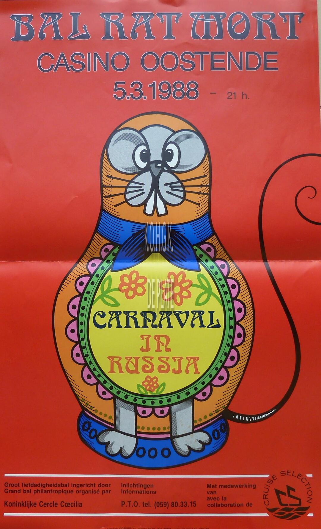 Affiche : Koninklijke Cercle Coecilia. Bal Rat Mort. Carnaval in Russia. Casino Oostende. 05/03/1988
