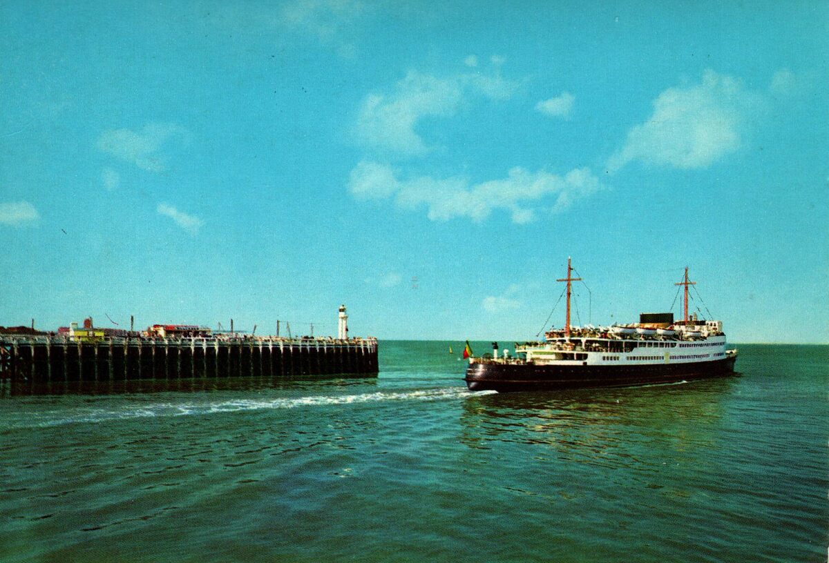 Krüger, N° 933/137. - Oostende-Dover - Maalboot. La Malle. Mail-boat. Fährboot. - De pakketboot vaart de haven uit. Links het Weststaketsel