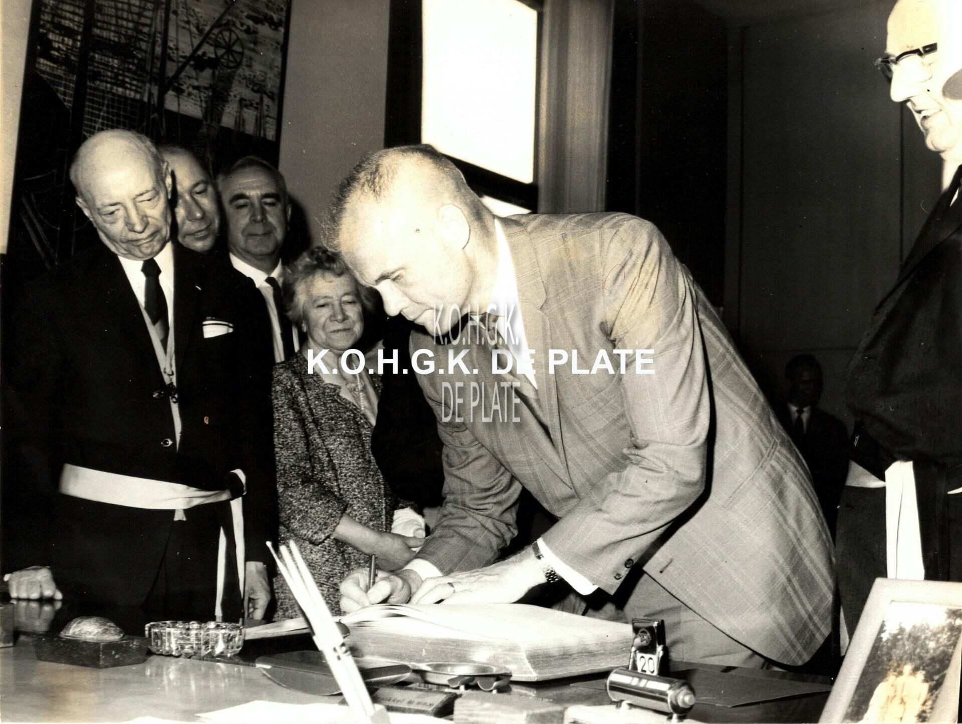 Formaat : 18 x 24 cm. - Ruimtevaarder John Glenn tekent het Gulden boek op het stadhuis