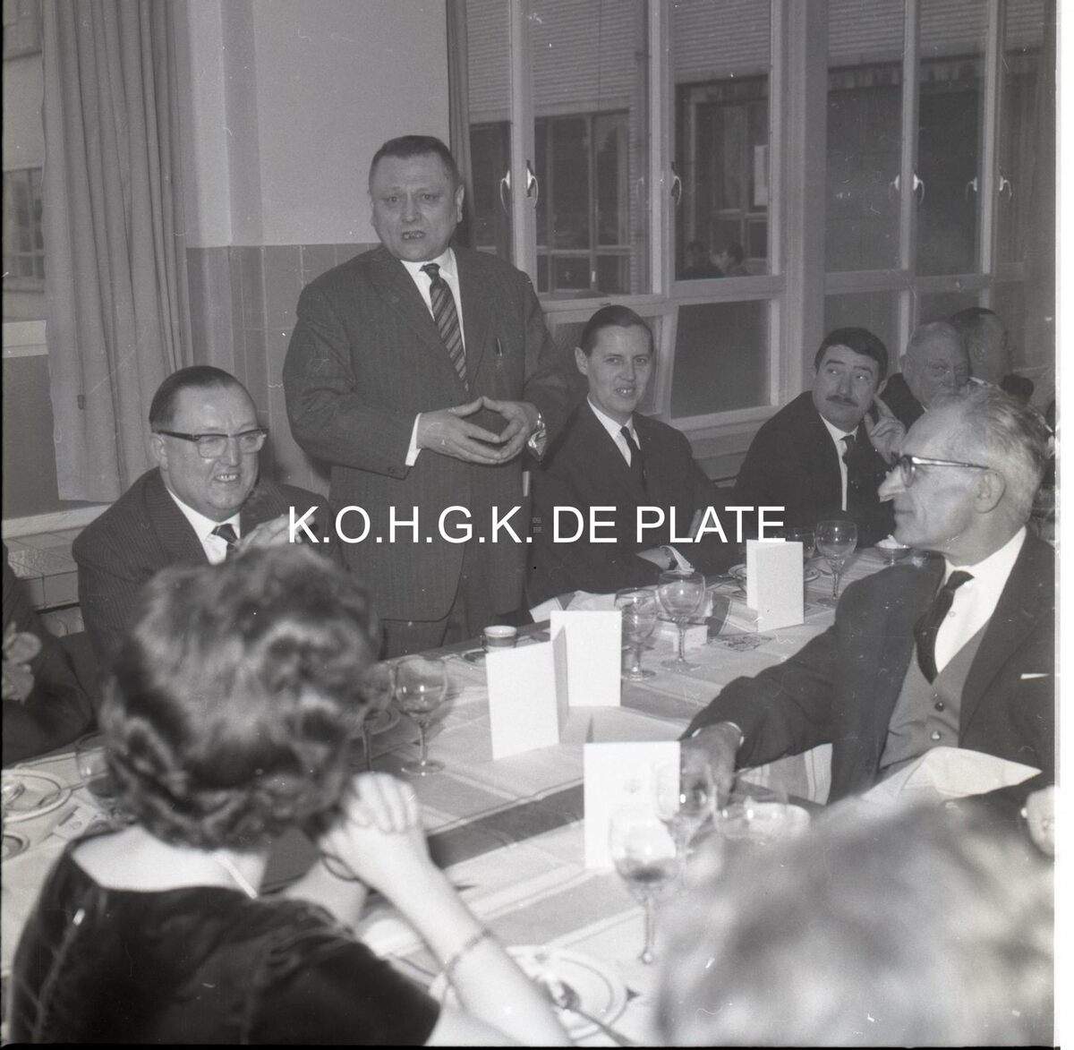 Negatief : 6 x 6 cm. - Walter Debrock, adjunkt-kabinetchef bij het Ministerie van Nationale Opvoeding en Cultuur houdt zijn toespraak