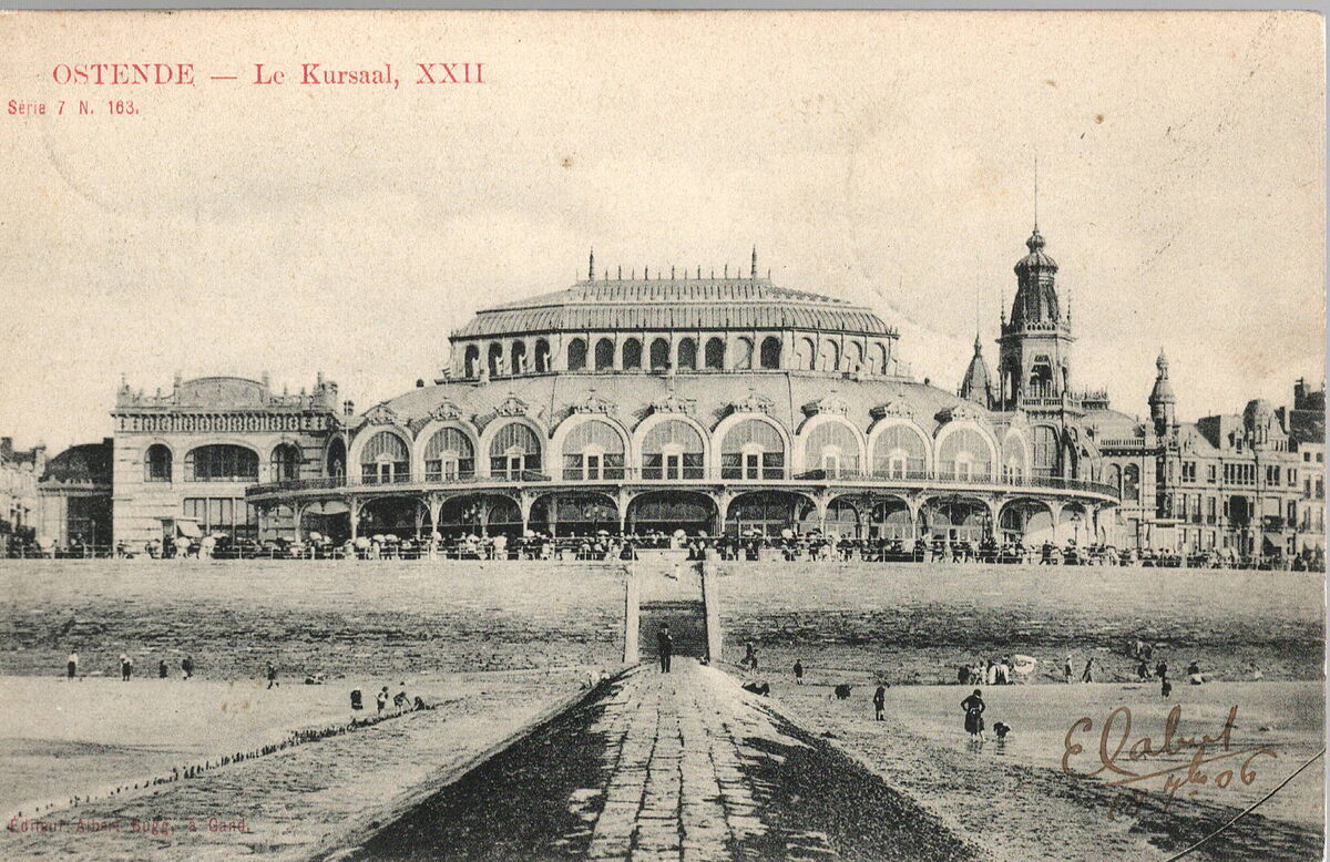 Excelsior, Série 7, N° 163. - Ostende - Le Kursaal, XXII. - De noordgevel van de tweede Kursaal langs de Zeedijk, gezien vanop een golfbreker op het Groot Strand