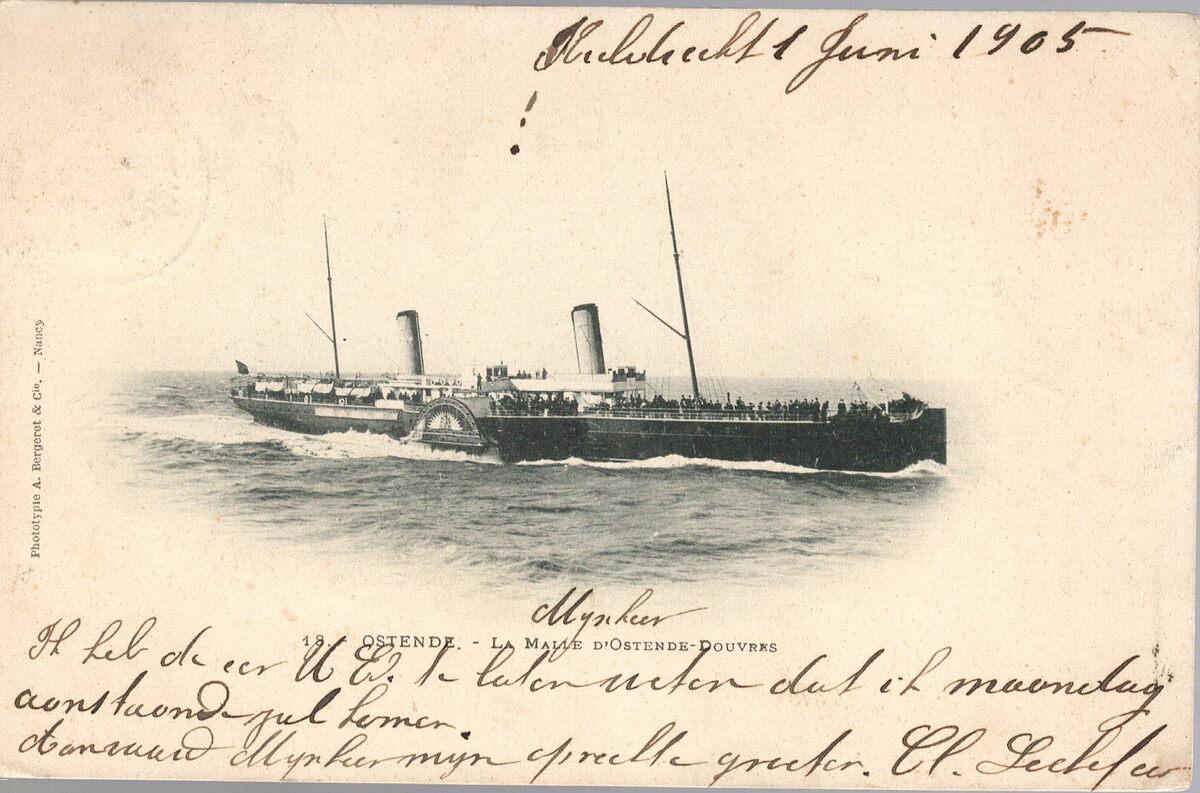 Phototypie A. Bergeret et Cie Nancy, nr.18. - Ostende - La malle d'Ostende-Douvres. - Een raderstoomboot van Oostende - Doverlijn
