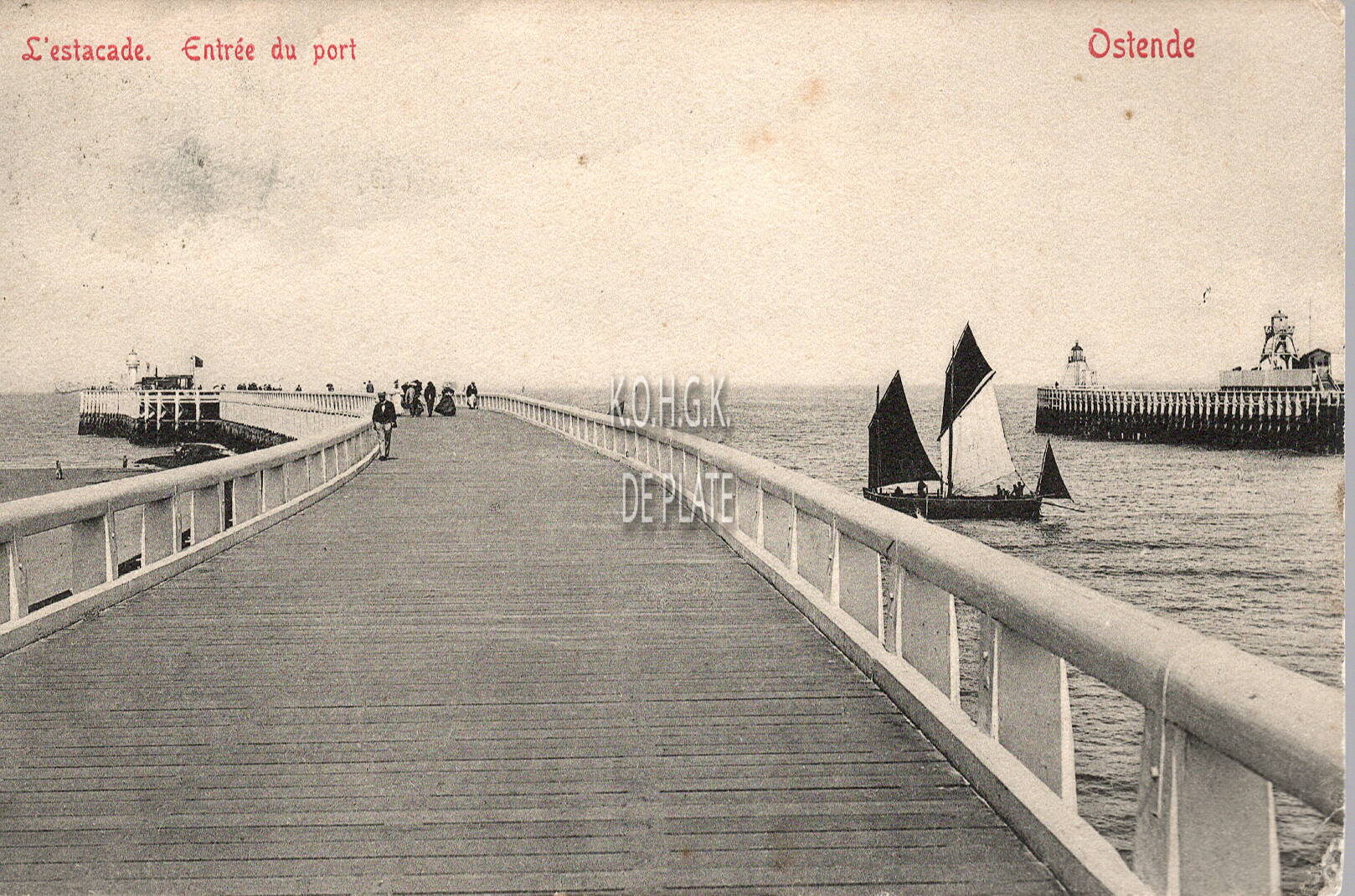 Ed. V.G. [=Victor Grégoire], 42 avenue du midi, Bruxelles. - Ostende - L'estacade. Entrée du port. - In de havengeul, een panneschuit