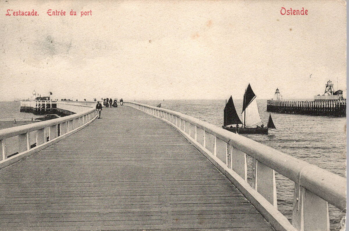 Ed. V.G. [=Victor Grégoire], 42 avenue du midi, Bruxelles. - Ostende - L'estacade. Entrée du port. - In de havengeul, een panneschuit