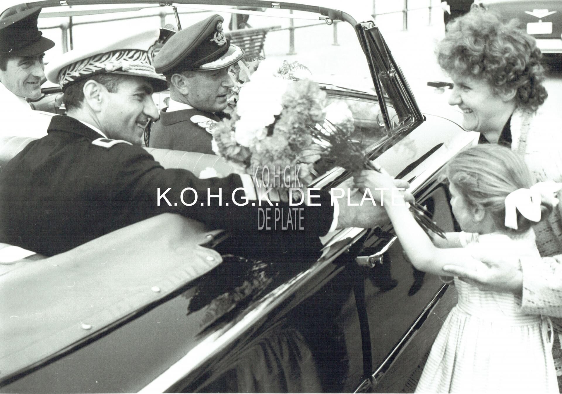 Vergroting. Formaat : 28 x 40 cm. - Mohammad Reza Pahlavi, sjah van Iran op bezoek te Oostende.