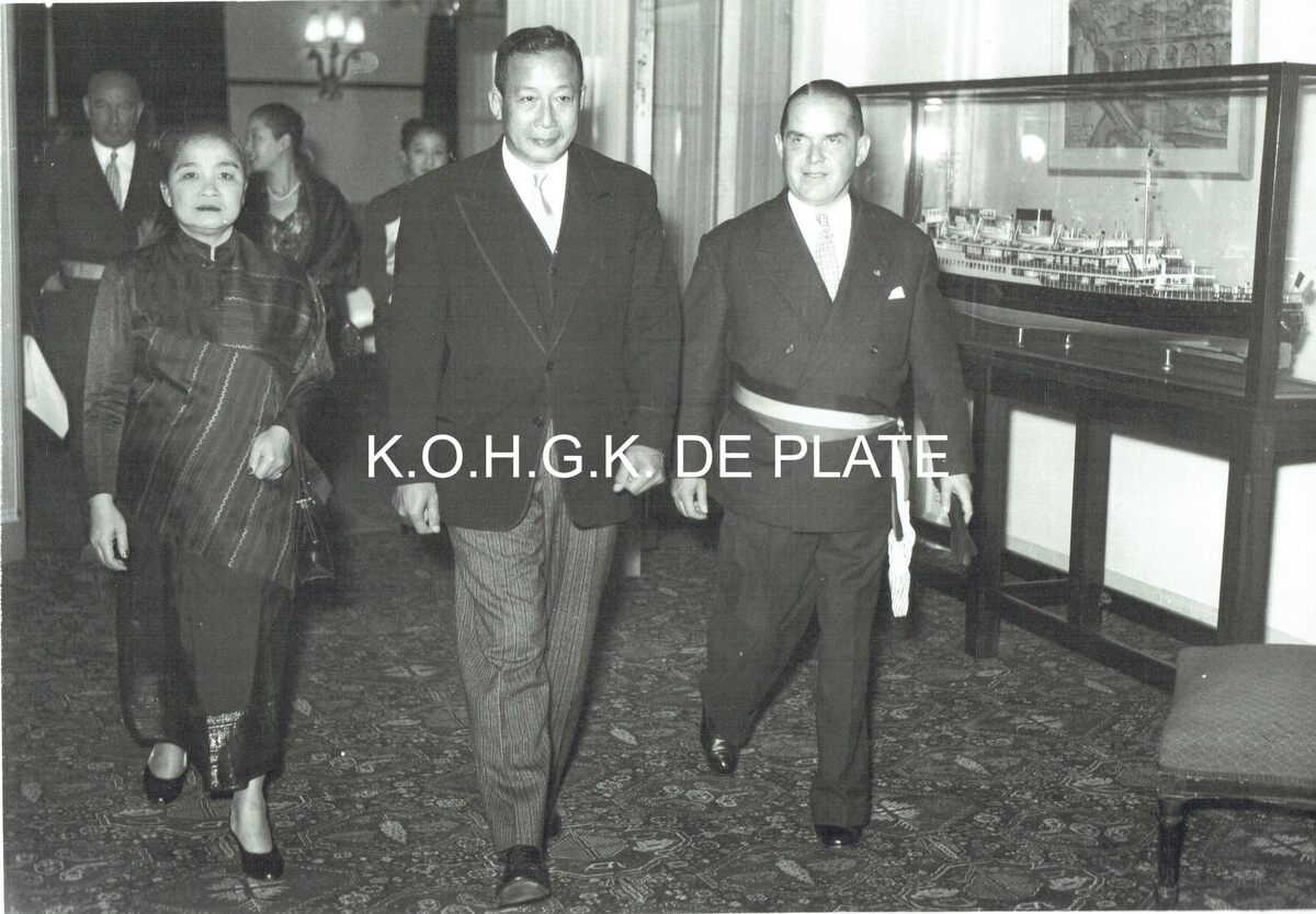 Vergroting. - Formaat : 28 x 40 cm. - Ontvangst door burgemeester Adolf VAN GLABBEKE te Oostende van een prins van Laos en zijn echtgenote.
