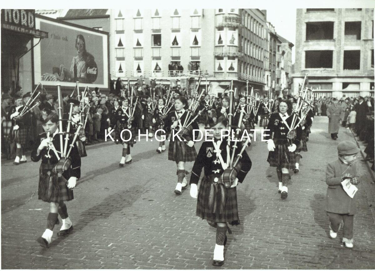 Vergroting. - Formaat : De "Ostendia Schotten" op het Wapenplein. Reclamepaneel voor "Coca Cola". Op de hoek van de Louisa- en Brabantstraat "Grand Hotel Central"