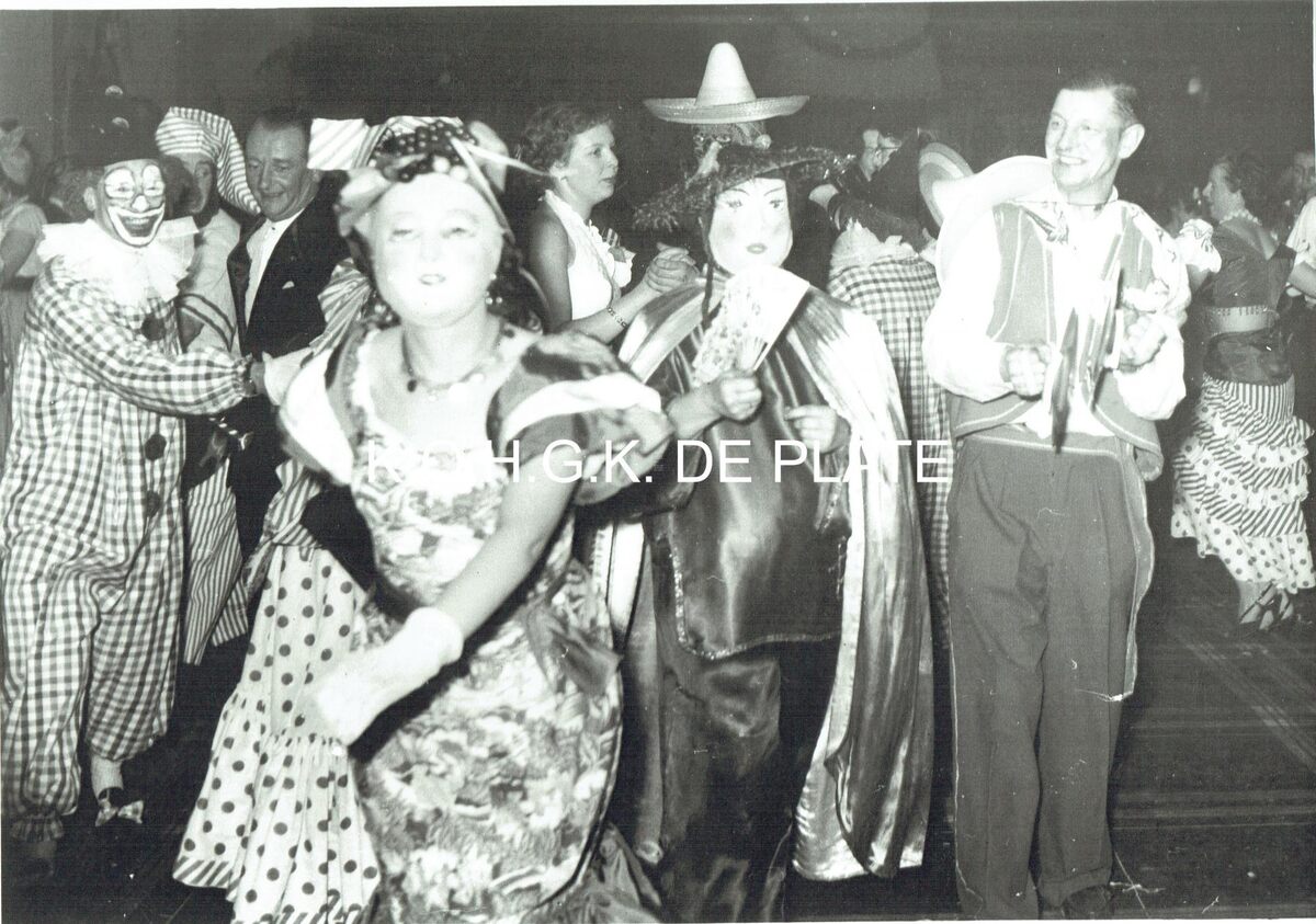 Vergroting. - Formaat : 30 x 40 cm. - Rechts, volkzanger Bertino met zijn wandelend orkest.