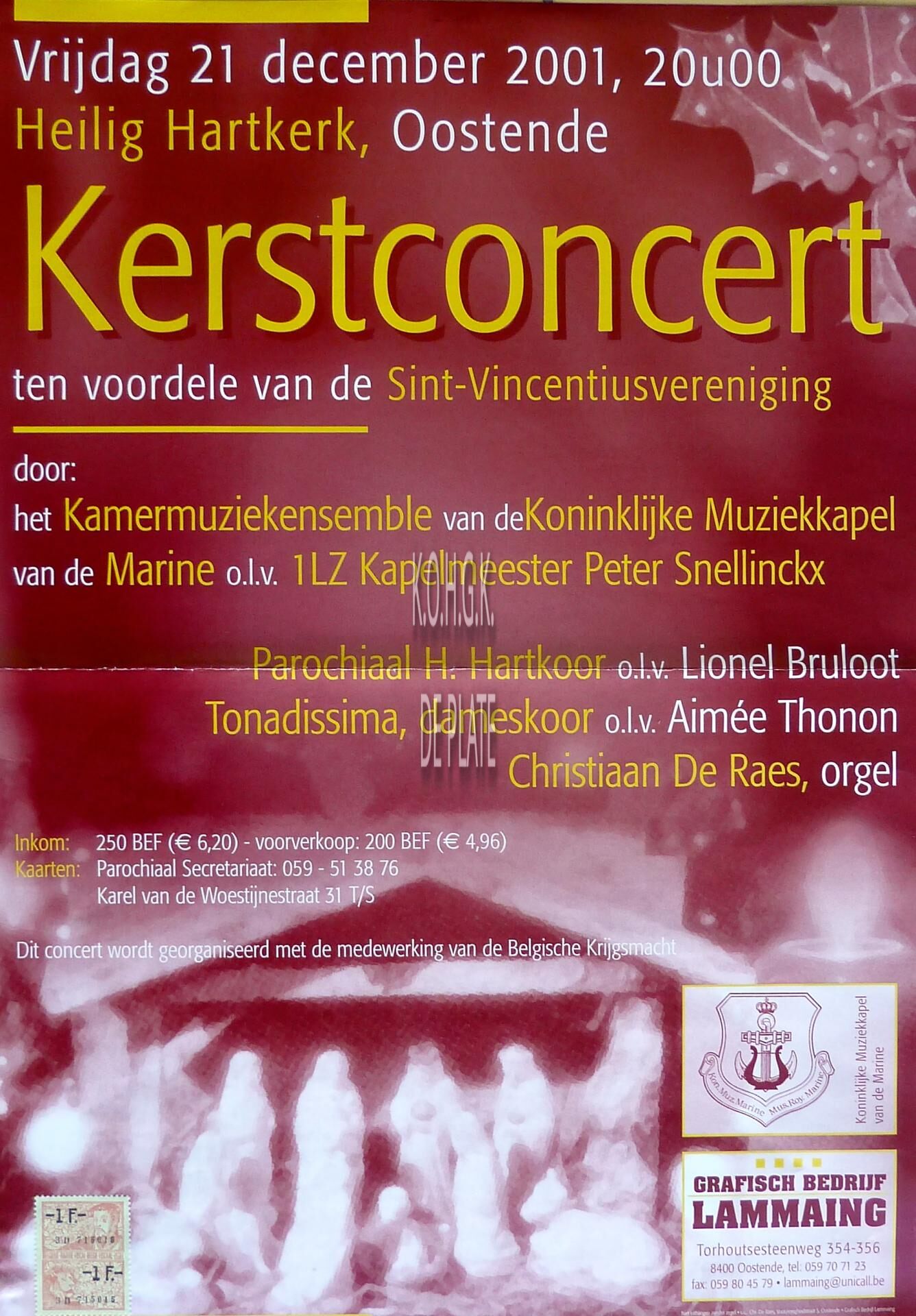 Formaat : 42 x 30 cm. - o.l.v. 1LZ Kapelmeester Peter Snellinckx. Ten voordele van de Sint-Vincentiusvereniging. Met het Parochiaal H. Hartkoor o.l.v. Lionel Bruloot. Tonadissima, dameskoor o.l.v. Aimée Thonon. Christiaan De Raes, orgel