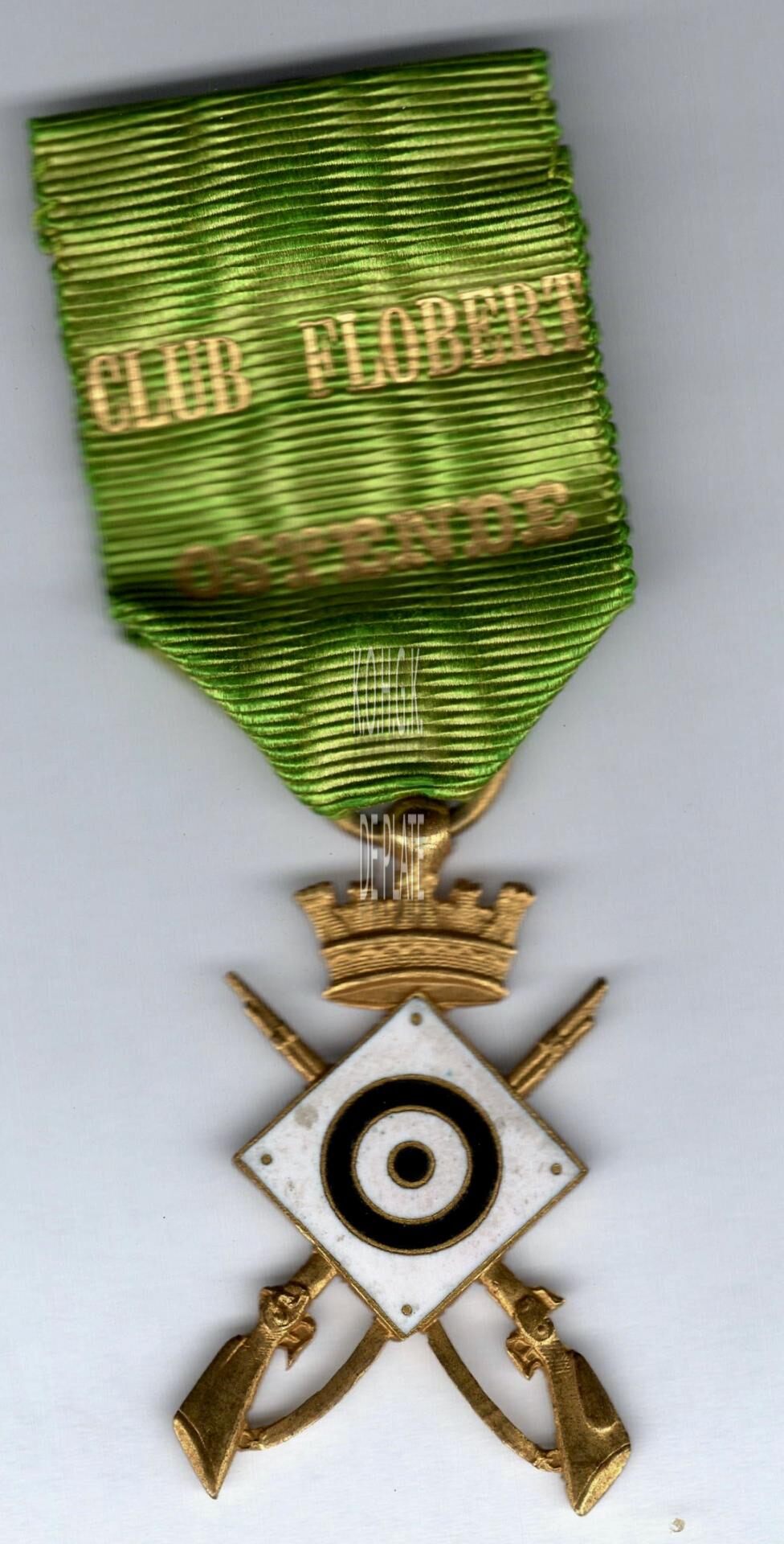 Het draagteken bestaat uit een groen lint met vergulde tekst CLUB FLOBERT / OSTENDE, daaronder aan een bol en ring het teken.