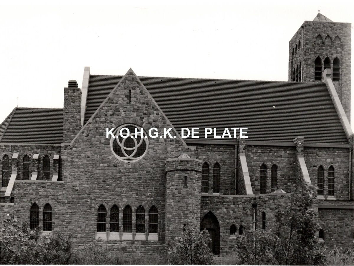 Formaat : 13 x 18 cm. - De kerk werd gebouw tussen 1956 en 1959 naar de plannen van architect Sylvain Smis onder het pastoraat van Georges Borre. Pseudo-gotische kerk onder één zadeldak, met uitspringend westportaal, een klein transept en uitgebouwd koor, met de toren op het zuidwesten.