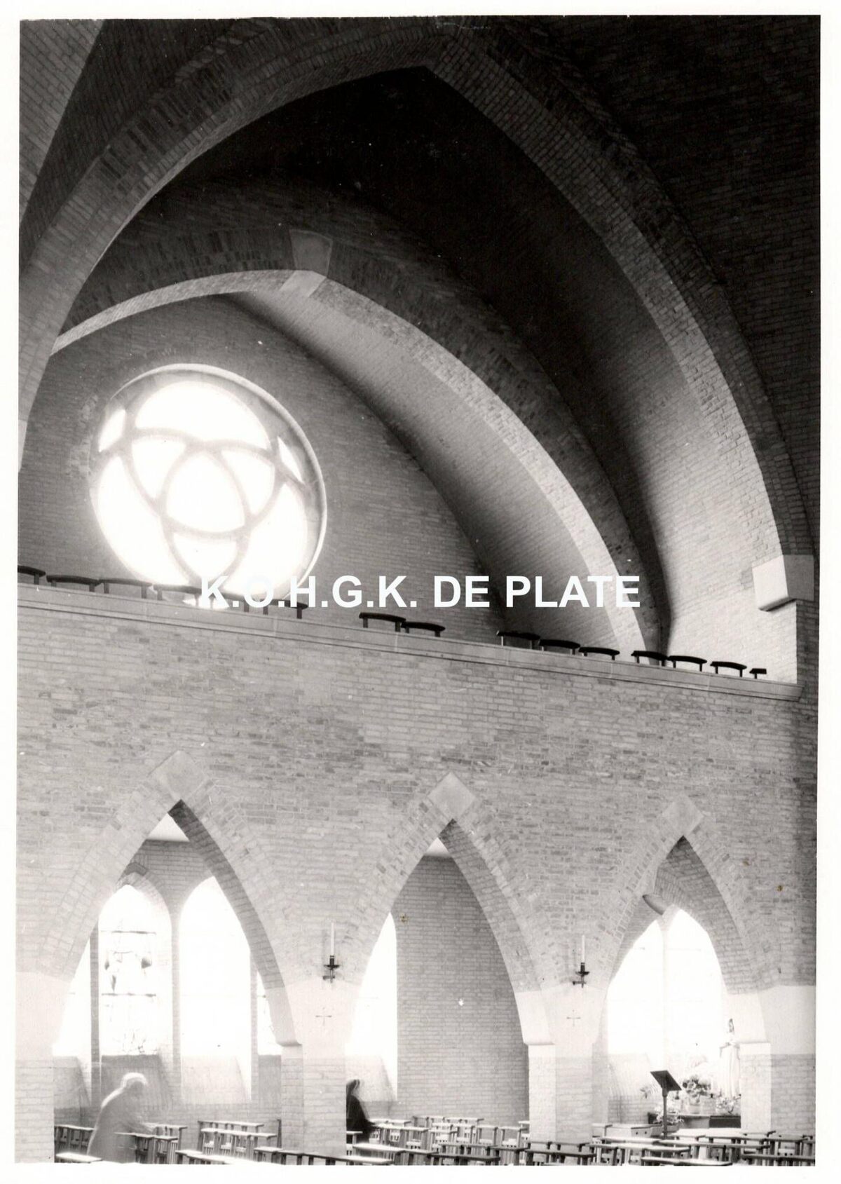 Formaat : 13 x 18 cm. - De kerk werd gebouw tussen 1956 en 1959 naar de plannen van architect Sylvain Smis onder het pastoraat van Georges Borre. Pseudo-gotische kerk onder één zadeldak, met uitspringend westportaal, een klein transept en uitgebouwd koor, met de toren op het zuidwesten.