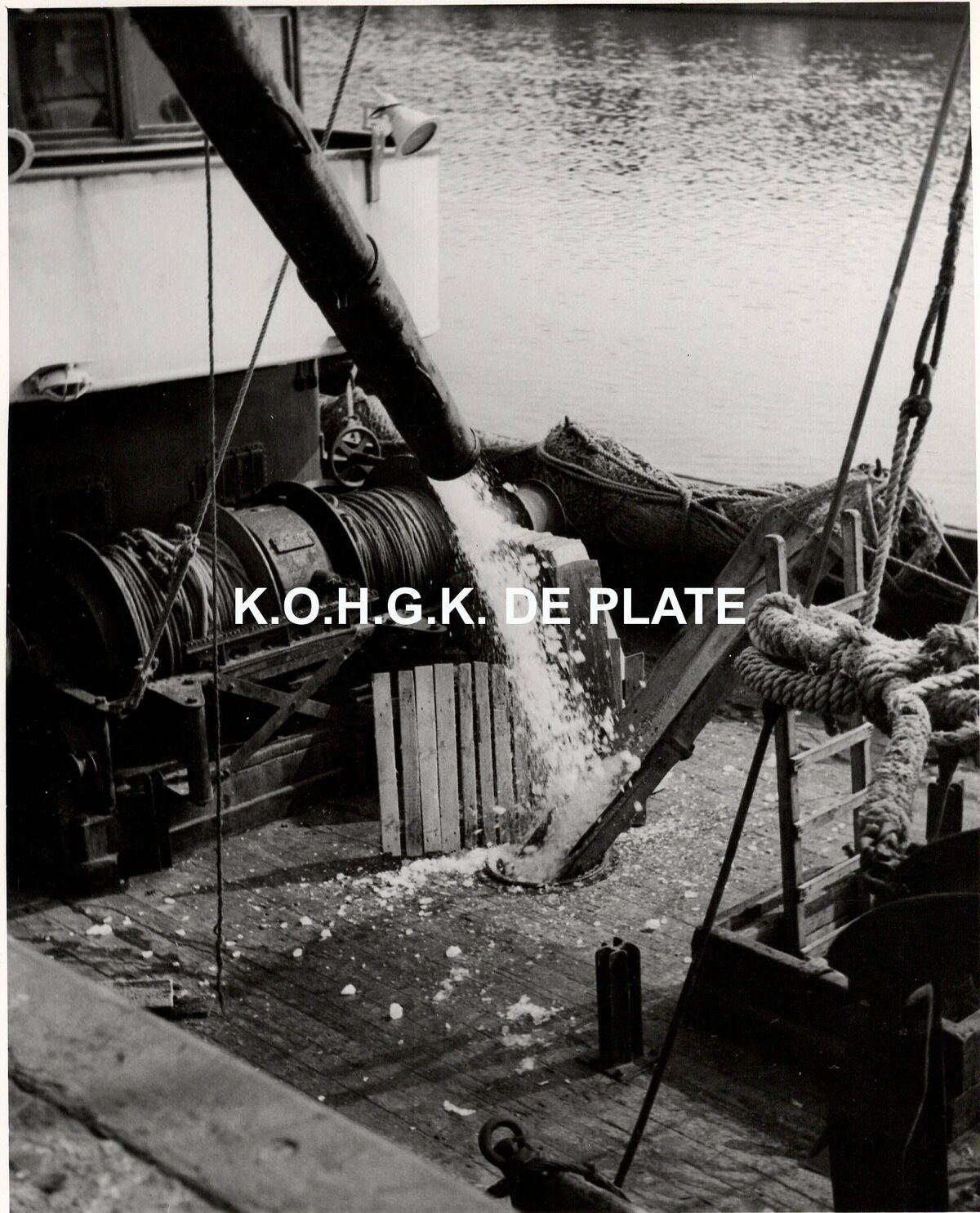 Formaat : 18 x 13 cm. - Het ijs wordt op het schip gespoten