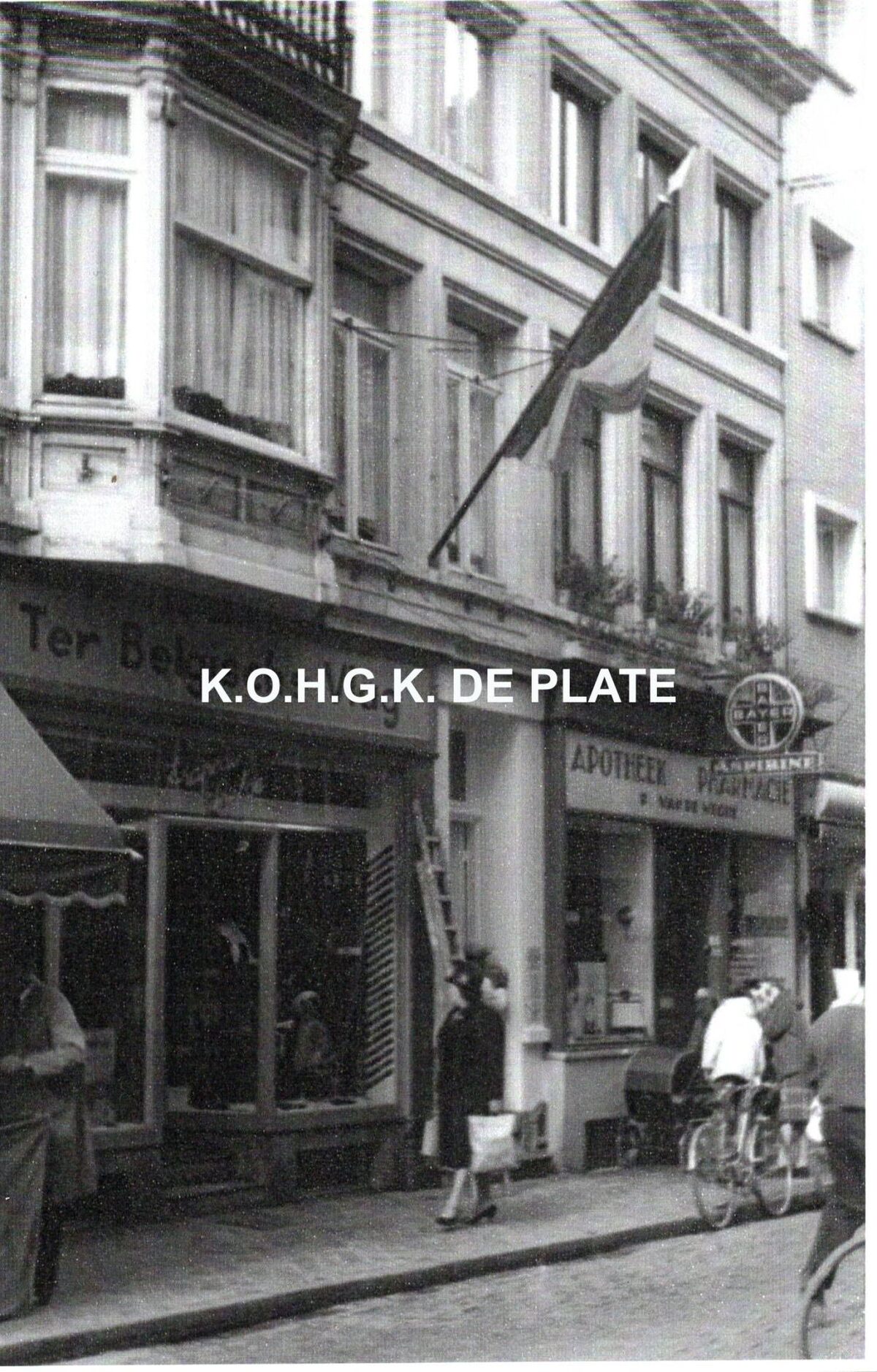 Afdruk. - Formaat : 19 x 12 cm. - Rechts ervan apotheek Van de Weghe