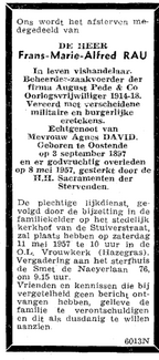 Advertentie : Doodsbericht Frans Rau